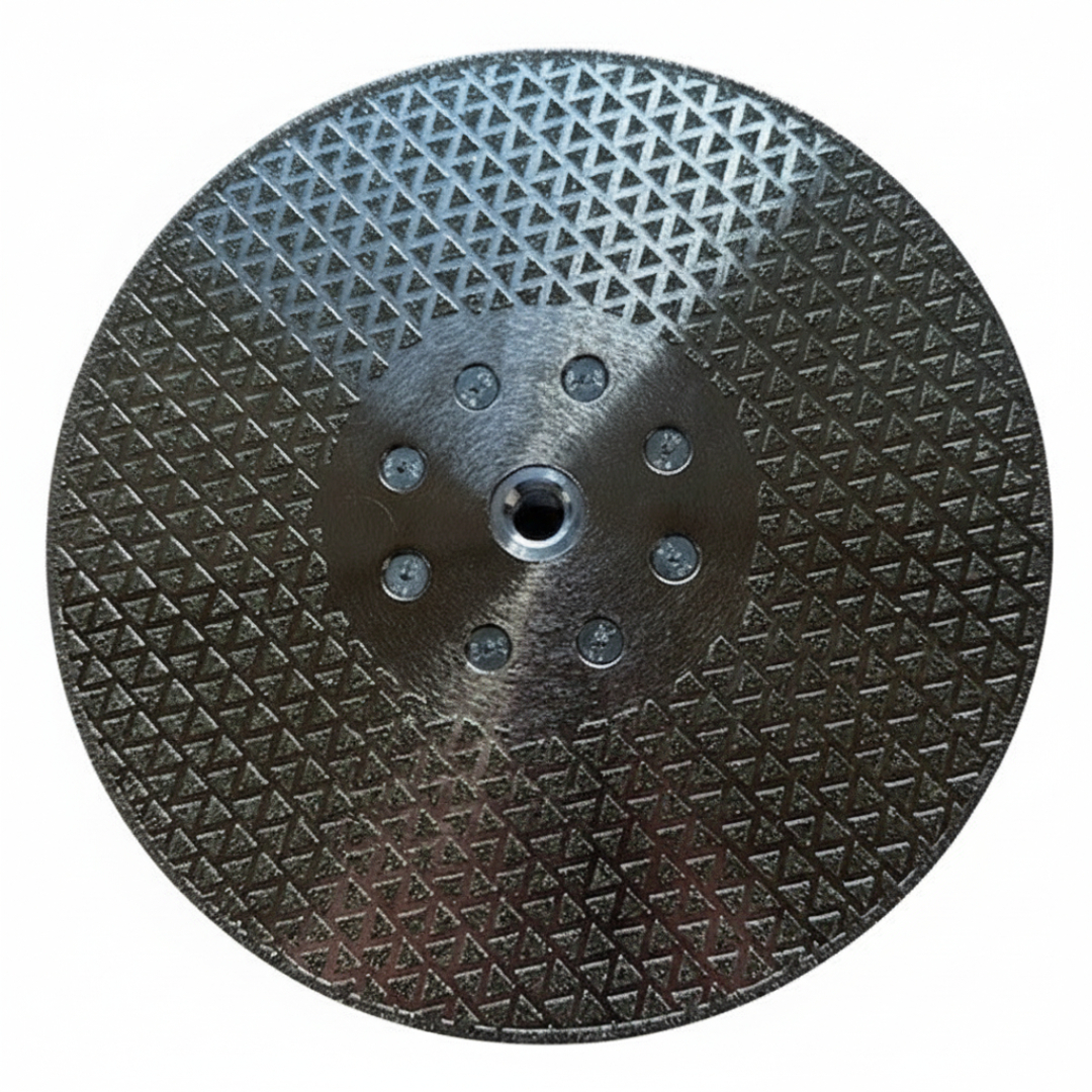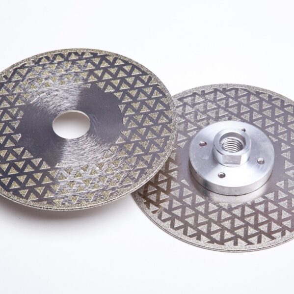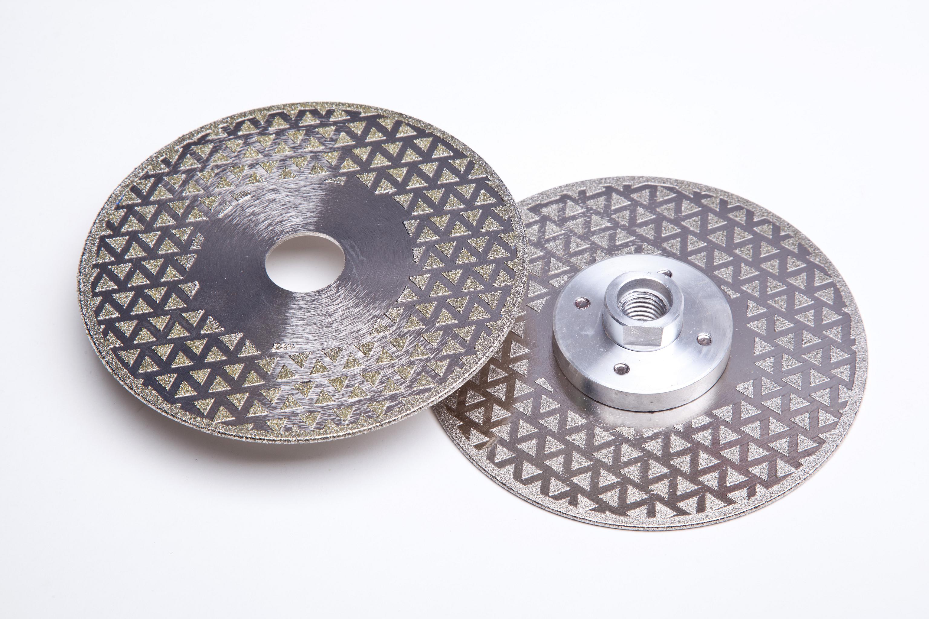 Pyramid design double sided electroplated diamond vanity blade available with or without M14 flange.