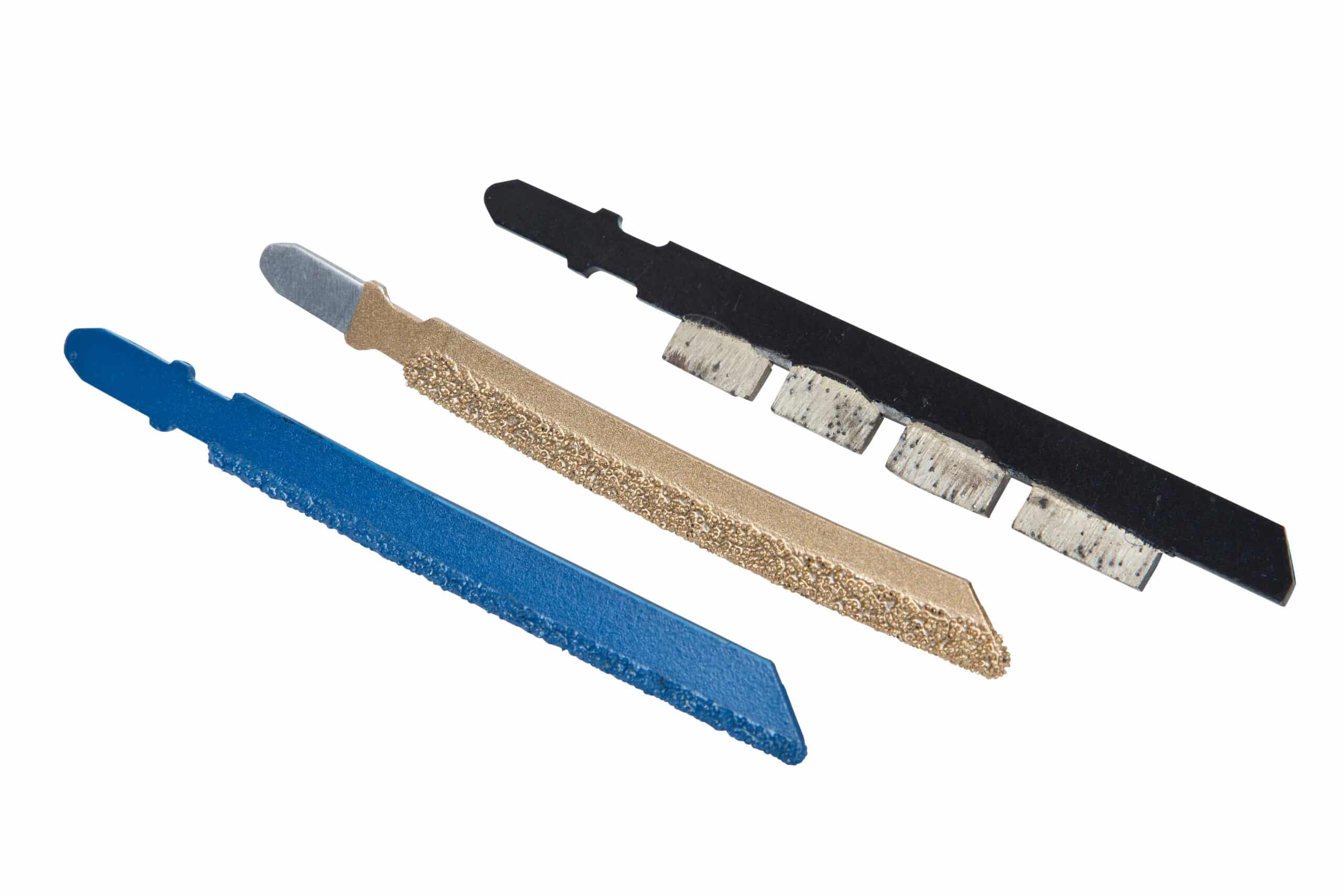 Diamond jigsaw blades with the standard Bosch “T” fitting for fitment in standard woodworking jigsaws.