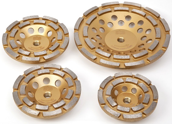 Double row concrete diamond grinding cup wheel with an M14 threaded centre fitting to screw straight on to your angle grinder/polisher.