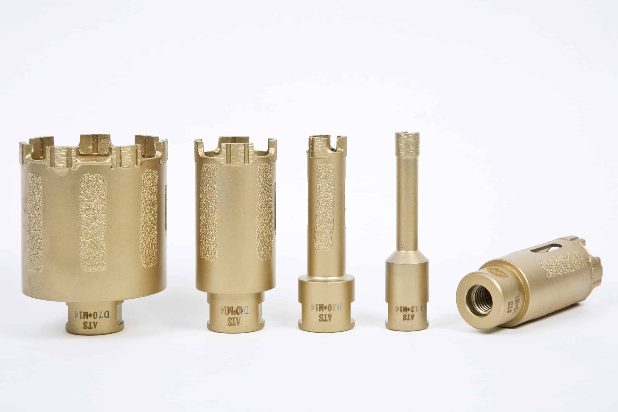 Sintered Dry diamond holesaws with vacuum brazed diamond body to stop the bit snagging.