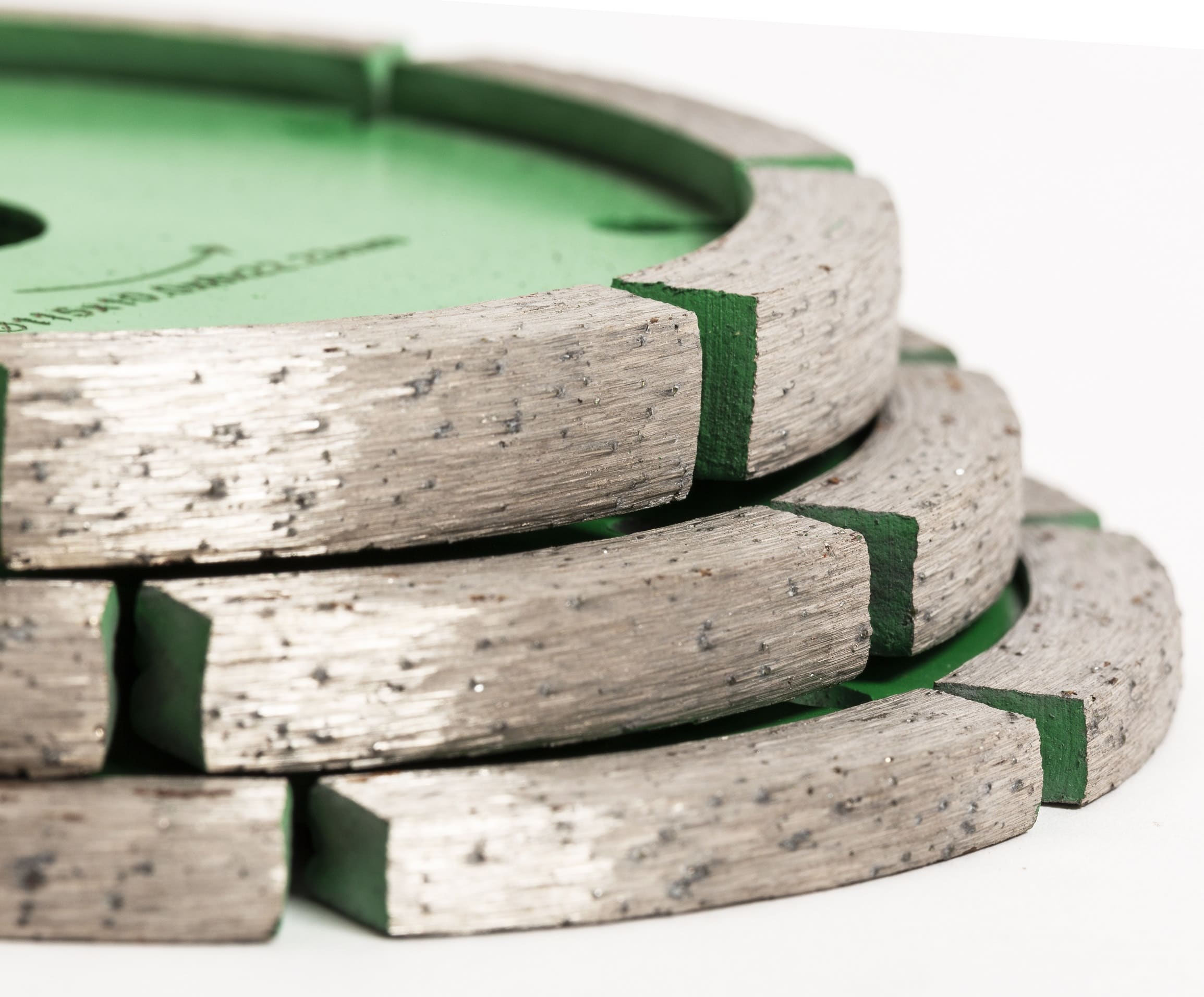 Square segment mortar raking blade available in two diameters with three thicknesses.